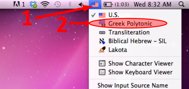 In order to type in Greek, you will need to install the proper Greek keyboard driver, in addition to using an appropriate font. Follow these instructions to conform to the standards adopted by NCU. Scroll down for instructions on Macs (OSX).